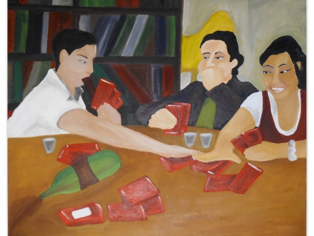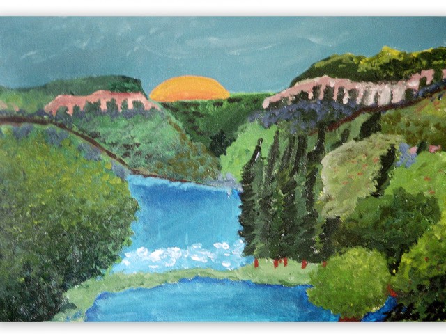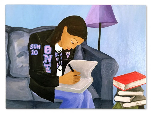 I primarily work in oil and acrylic paint. Most of my subject matter consists of figures and landscapes. I usually paint from photographs unless I am working on an abstract piece or illustration. I would describe my painting style as flat, modern, and stylized. My favorite painter is Alex Katz.