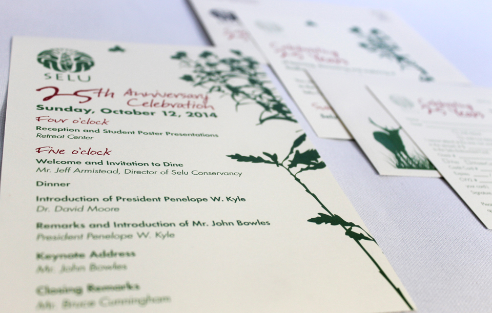 Direct mail brochure, invitation and program designed for Selu’s 25th Anniversary, 2015