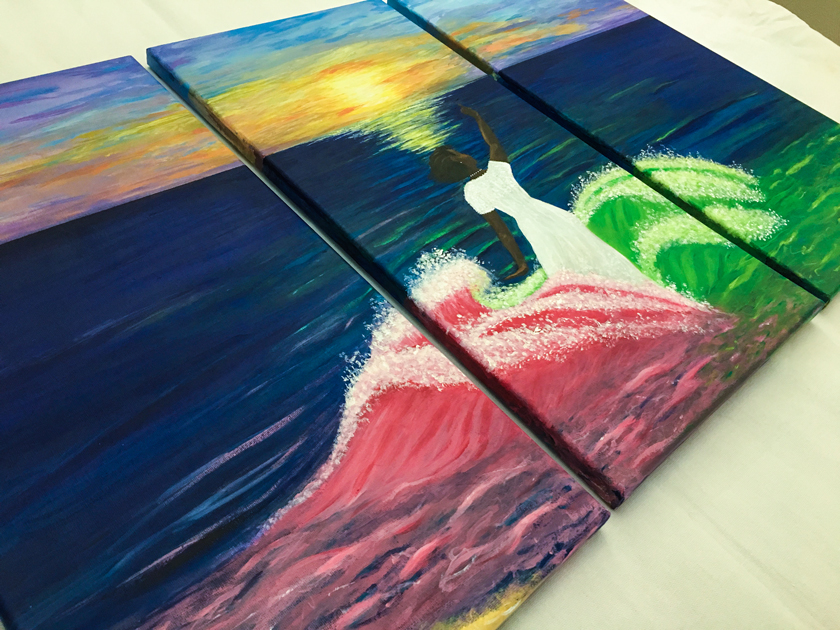 , acrylic on canvas, 3 – 10 x 20 in. canvases, 2017