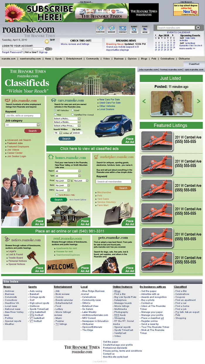 The Roanoke Times Classifieds Landing Page