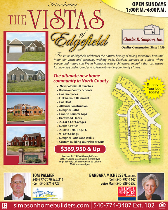 The Vistas of Edgefield advertisement published in The Roanoke Times Homes Now publication, 2009