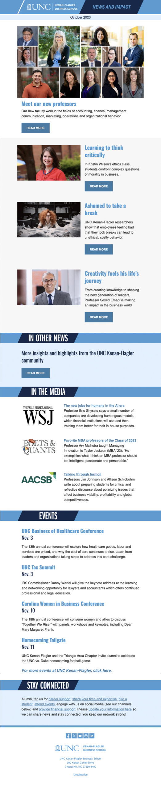 Redesigned the UNC Kenan-Flagler Business School Newsletter, 2022